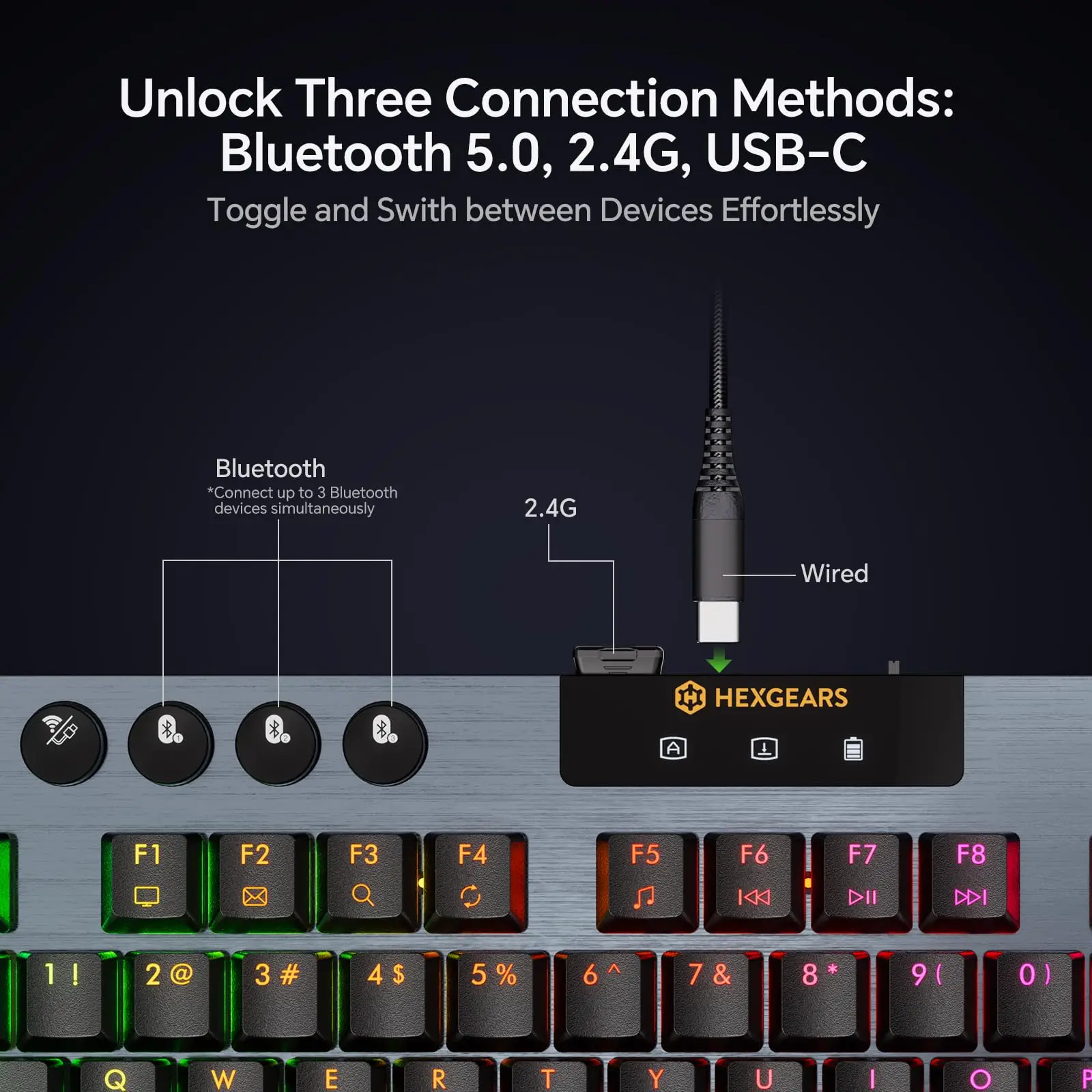 HEXGEARS A3 Bluetooth/2.4GWireless/Type-C Wired Mechanical Keyboard